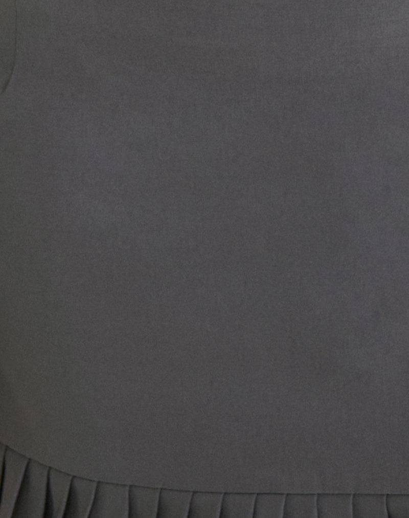 In slate grey stretch tailoring, the Sahana Skirt is cut to a mini length with a clean waistband. Finished with a pleated hem detail, it offers a structured yet feminine silhouette. Pair with the matching Alika top.